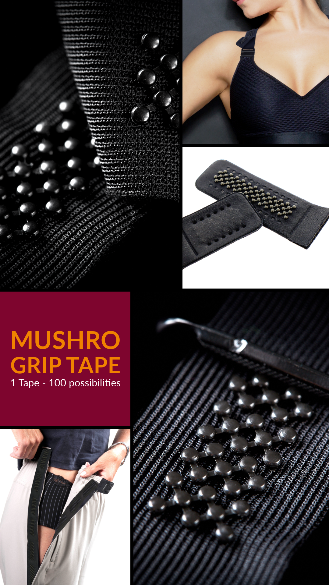 Dank des einzigartigen Designs bietet das Mushro Grip Tape eine präzise Ausrichtung, mühelose Reinigung und eine langlebige Verbindung – ganz ohne Kratzen oder Abnutzung. Ob in Sportbekleidung, Unterwäsche oder orthopädischen Hilfsmitteln, die Einsatzmöglichkeiten sind nahezu grenzenlos.